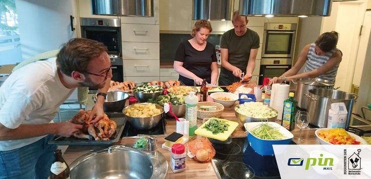 Kochen für die Familien - Die Bewohner des Ronald McDonald Hauses verbringen teilweise monatelang Zeit im Haus und warten auf die Genesung ihrer Kinder. Da ist es eine willkommene Abwechslung, wenn Freunde und Förderer des Hauses Kochabende veranstalten, an denen die Bewohner mit köstlichen Menüs verwöhnt werden.