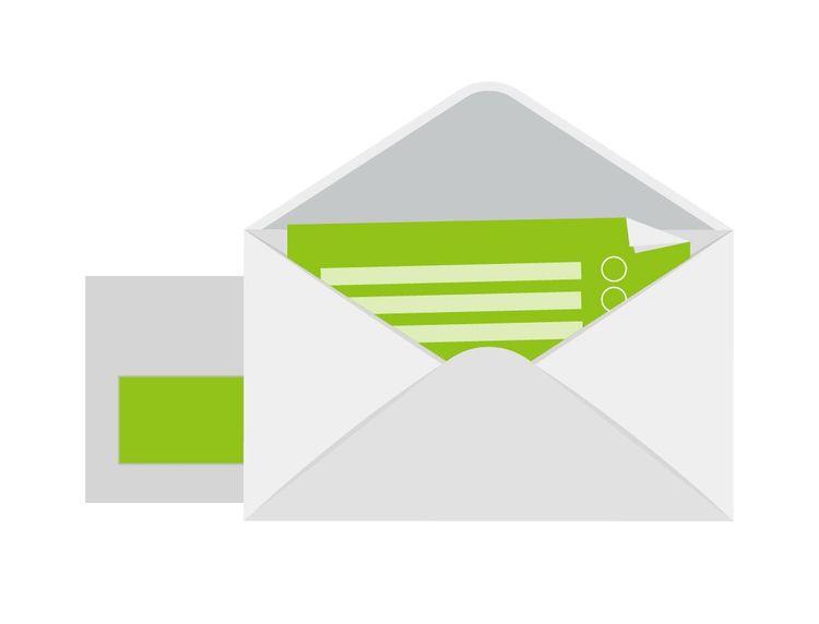 Werfen Sie die Unterlagen anschließen mit einem frankierten Umschlag in den grünen Briefkasten.